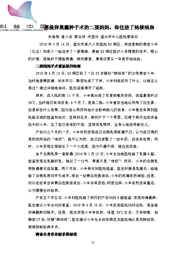 身边的结核病故事——想做卵巢囊肿手术的二孩妈妈,却住进了结核病房